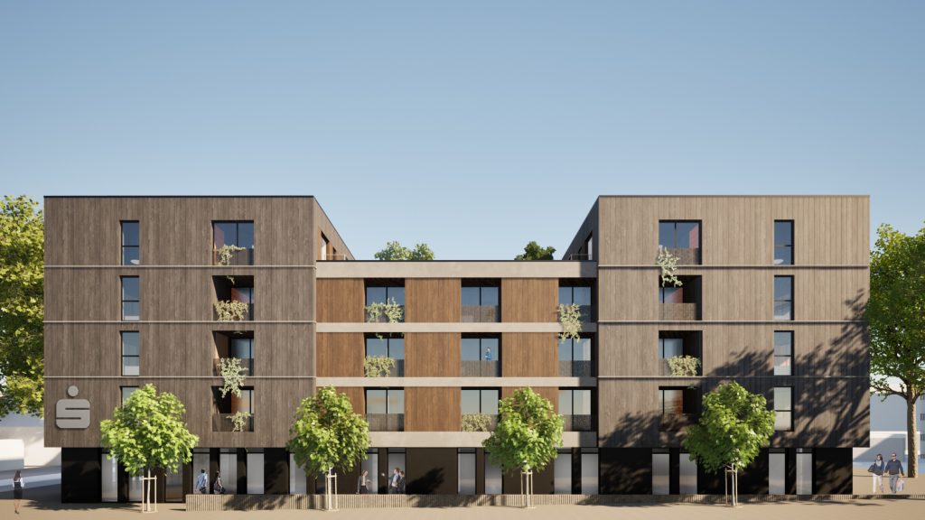 Im Erdgeschoss sind zwei Gewerbeeinheiten vorgesehen – eine der Einheiten wird für das neue Servicecenter der Braunschweiger Landessparkasse genutzt. Darüber hinaus wird eine Waschlounge mit Servicedienstleistung über WE-Wash integriert, um den Bewohner:innen zusätzlichen Komfort zu bieten. Modern gesteuert über die eigene WE-Wash-App.